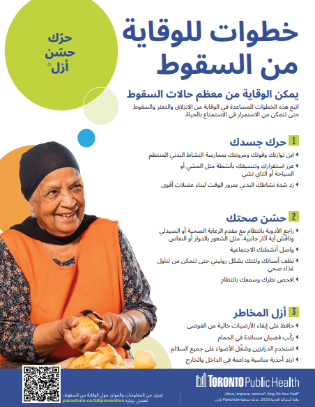 Thanks to a collaboration with Toronto Public Health and Parachute National Injury Prevention Centre, the “Move, Improve, Remove” posters are available in more languages: Arabic, Persian, Punjabi, Somali and Spanish.